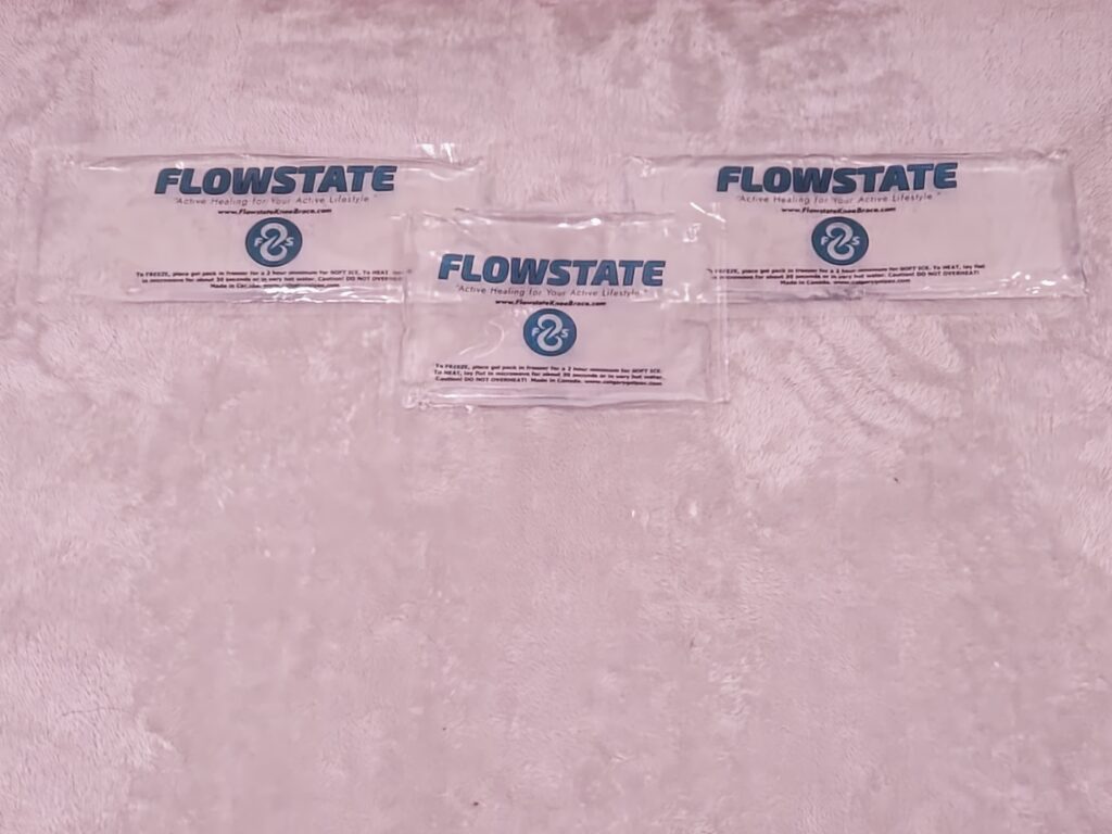 Flowstate provides protection to your injured knee so that you do not injure it further; compression to soothe inflamed tissue and reduce swelling; cooling and or heating from our hand made gel packs in the interior sleeves; and stabilization living hinge side supports to allow maximum knee extension/flexion to provide support for allowed activities.