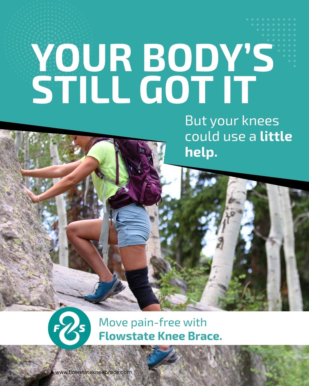 “Stay active and keep doing what you love while your knee heals with the new FlowState Knee Brace from VIBE Tech Utah.”